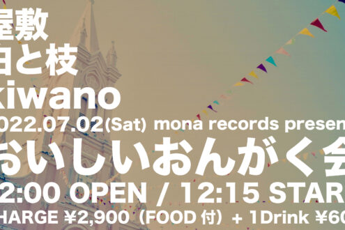 前売:¥2,400-(+1drink ¥600-)/ 当日:¥3,000-(+1drink ¥600-)